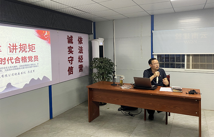 7月30日晚,公司紀(jì)委書(shū)記喬虎軍到巧家白鶴灘移民安置工程項(xiàng)目以《守紀(jì)律、講規(guī)矩,做新時(shí)代合格黨員》為主題向項(xiàng)目全體黨員、項(xiàng)目經(jīng)理、職工講授黨課。