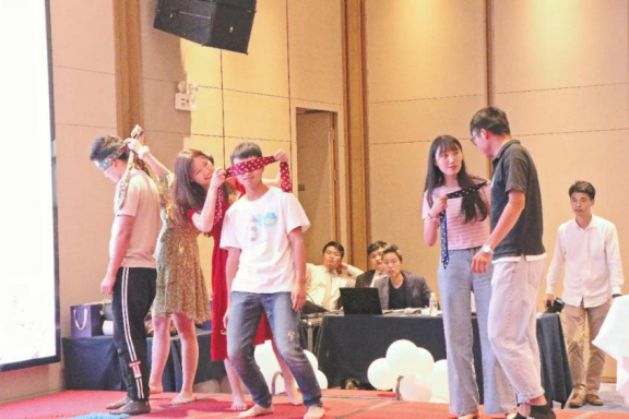 隨著活動開始,各位單身青年通過“擁抱另一個自己”、“愛會讓你長點心”環(huán)節(jié),青年積極主動的上場進行了自我介紹,由男女主持人牽頭讓男生、女生分別說出心意對象的標準,使大家加深了解。游戲環(huán)節(jié)由男女組隊搭檔,齊心協(xié)力共同完成游戲,休閑娛樂的同時進一步促進了大家的默契,在一片歡聲笑語中,互有好感的男女青年們相互交換了聯(lián)系方式。