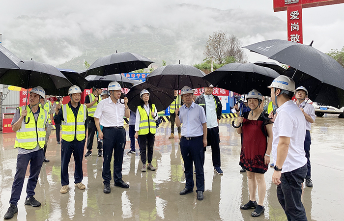 勞動(dòng)競(jìng)賽啟動(dòng)儀式前,金勇、陳文雙調(diào)研了公司承建的白鶴灘移民工程天生梁子安置點(diǎn),公司副總經(jīng)理、巧家移民項(xiàng)目指揮長(zhǎng)施文鐘,工會(huì)主席冷蕊陪同調(diào)研。在了解到當(dāng)天恰巧是天生梁子安置點(diǎn)首棟封頂?shù)娜兆雍?,金勇?duì)公司取得的成績(jī)表示了祝賀,并鼓勵(lì)現(xiàn)場(chǎng)的干部職工要乘勢(shì)而上,在確保汛期生產(chǎn)安全的同時(shí),把這一棟棟漂亮的“江景房”抓緊建好,爭(zhēng)取讓移民百姓提前搬入新居。