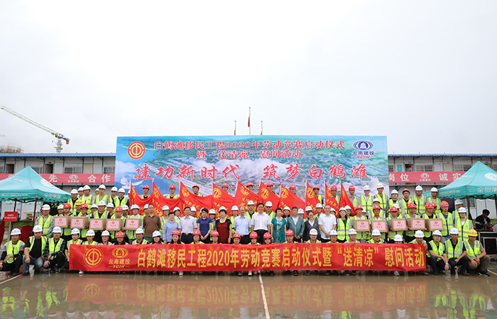 6月29日,由云南省總工會(huì)主辦,昭通市總工會(huì)、云南建投集團(tuán)工會(huì)承辦的白鶴灘移民工程2020年省重點(diǎn)工程勞動(dòng)競(jìng)賽啟動(dòng)儀式暨“送清涼”慰問活動(dòng)在巧家縣金沙江白鶴灘水電站移民工程北門安置點(diǎn)現(xiàn)場(chǎng)舉行。云南省總工會(huì)黨組成員、副主席金勇,昭通市人大委員會(huì)副主任、市總工會(huì)主席陶天蓉,集團(tuán)黨委副書記、工會(huì)主席陳文雙及云南建投集團(tuán)24家參建單位職工代表出席啟動(dòng)儀式。