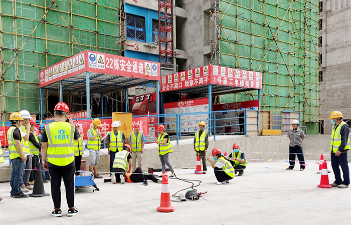 6月22日上午,五〇六直管部大理龍悅?cè)A府項目開展模擬觸電事故應急演練活動。