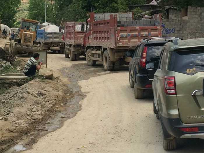如果說(shuō)龍頭山項(xiàng)目是因“快”而難,那么樂(lè)紅項(xiàng)目就是因?yàn)椤岸隆倍y,到過(guò)樂(lè)紅鎮(zhèn)的每個(gè)人對(duì)此都深有感觸。項(xiàng)目必經(jīng)的交通要道在地震后路況復(fù)雜,從龍頭山到樂(lè)紅鎮(zhèn)的鄉(xiāng)村道路在地震中遭到破壞正在維修,路上擁堵點(diǎn)多。所以盡管項(xiàng)目不大,但由于路況原因交通不暢,各項(xiàng)工作都很難開(kāi)展。