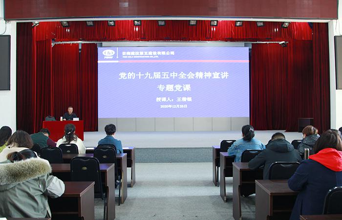 12月25日下午,公司黨委副書記、董事長王楷銀在公司禮堂講授黨的十九屆五中全會精神專題黨課,公司機關(guān)員工及聯(lián)系黨支部黨員代表共計137人參加學習。