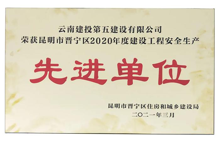 近日,由五〇四直管項目部施工的水云里項目榮獲“昆明市晉寧區(qū)2020年度建設工程安全生產(chǎn)先進單位”稱號。