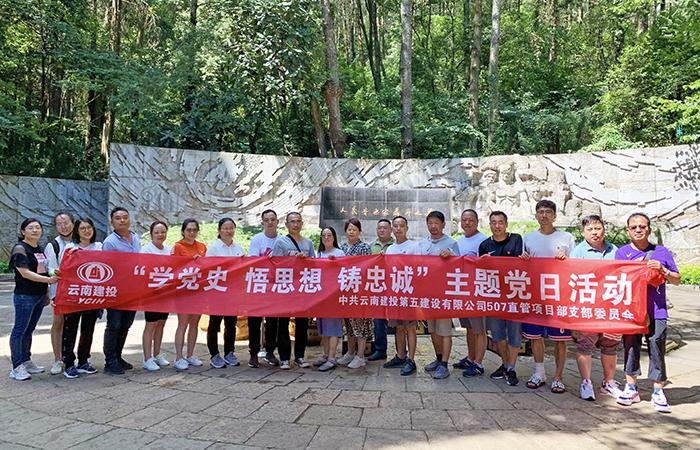 • 5月22日,五〇七直管部黨支部在直管部經(jīng)理包文、工會(huì)主席畢鵬的組織帶領(lǐng)下全體在昆黨員、發(fā)展對(duì)象、團(tuán)員、二線職工及三供一業(yè)項(xiàng)目職工,共20人到西山聶耳公墓開展黨史教育主題活動(dòng)。
