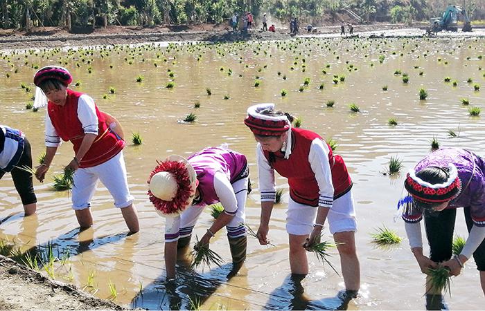 5月29日,五〇三直管部施工的大理市環(huán)洱海流域湖濱緩沖帶生態(tài)修復與濕地建設工程項目的稻田公園中,大理市雙廊鎮(zhèn)人民政府“開秧門”活動正如火如荼進行著,項目部邀請了當?shù)鼐用襁M行水稻秧苗栽插。