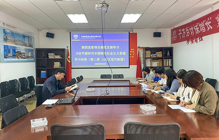 9月9日,第四直管項目部黨支部組織在昆黨員職工學(xué)習(xí)《習(xí)近平新時代中國特色社會主義思想問答》第二章 人間正道開新篇,共8名黨員職工參與學(xué)習(xí)。