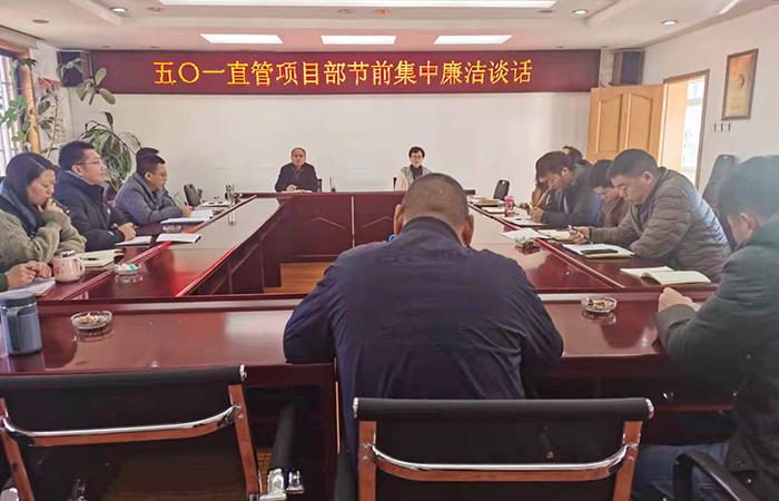 1月25日下午,五〇一直管項目部開展春節(jié)前集中廉潔談話,會議由黨支部書記王敏主持,直管部班子成員、科室負責(zé)人及項目經(jīng)理參會。