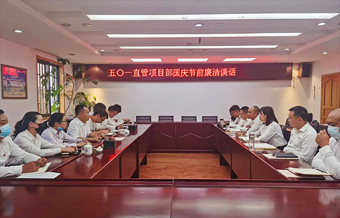 9月30日,五〇一直管項(xiàng)目部開展國慶節(jié)前廉潔談話,會議由直管部班子成員、科室負(fù)責(zé)人及項(xiàng)目經(jīng)理參會。