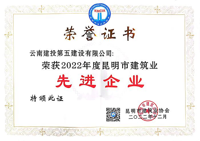 2022年12月8日,昆明市建筑業(yè)協(xié)會召開第八屆理事會換屆選舉會員大會,公司繼續(xù)當選為昆明市建筑業(yè)協(xié)會副會長單位,同時榮獲2022年度昆明市建筑業(yè)“先進企業(yè)”“質(zhì)量管理優(yōu)秀企業(yè)”“質(zhì)量管理小組活動優(yōu)秀企業(yè)”3項榮譽。