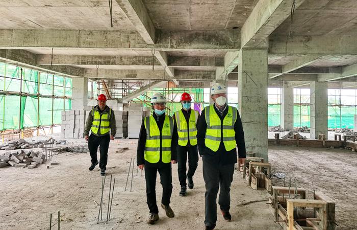 石俊一行實(shí)地查看項(xiàng)目施工現(xiàn)場(chǎng),認(rèn)真聽取了項(xiàng)目負(fù)責(zé)人對(duì)項(xiàng)目施工情況的工作匯報(bào),詳細(xì)了解項(xiàng)目進(jìn)展情況以及現(xiàn)場(chǎng)重難點(diǎn)工作,對(duì)項(xiàng)目工作進(jìn)行了指導(dǎo)。