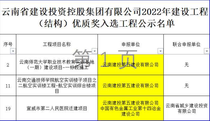 近日,云南省建設(shè)投資控股集團(tuán)有限公司公布了2022年建設(shè)工程(結(jié)構(gòu))優(yōu)質(zhì)獎(jiǎng)入選工程名單,集團(tuán)內(nèi)本年度共有19個(gè)項(xiàng)目入選,公司參評(píng)的云南師范大學(xué)職業(yè)技術(shù)教育實(shí)訓(xùn)基地(一期)建設(shè)項(xiàng)目-一標(biāo)段施工、云南交通技師學(xué)院航空實(shí)訓(xùn)樓子項(xiàng)目之二航空實(shí)訓(xùn)樓工程-航空實(shí)訓(xùn)綜合樓項(xiàng)目、宣威市第二人民醫(yī)院遷建項(xiàng)目三個(gè)項(xiàng)目均入選獲獎(jiǎng)。