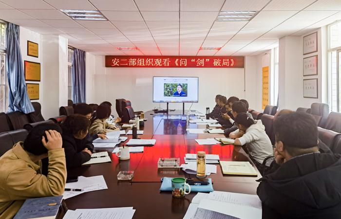 3月22日下午,安二部組織在昆黨員及二線科室負責人16人觀看警示教育片《問“劍”破局》第二集《酒局中人》。