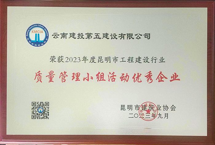 8月30日,昆明市建筑業(yè)協(xié)會發(fā)布了《關(guān)于公布2023年度昆明市工程建設(shè)行業(yè)優(yōu)秀質(zhì)量管理小組、質(zhì)量管理小組活動優(yōu)秀企業(yè)和優(yōu)秀推進者的決定》,公司榮獲2023年度昆明市工程建設(shè)行業(yè)質(zhì)量管理小組活動優(yōu)秀企業(yè)。五〇一直管項目部求知QC小組“提高金剛砂耐磨地坪面層施工質(zhì)量合格率”課題榮獲一等獎;五〇二直管項目部孤狼QC小組“提高外墻薄抹灰一次成型合格率”課題和隧道直管項目部峻嶺雄鷹QC小組“提高預(yù)制T梁鋼筋定位尺寸精準(zhǔn)率”課題榮獲二等獎。