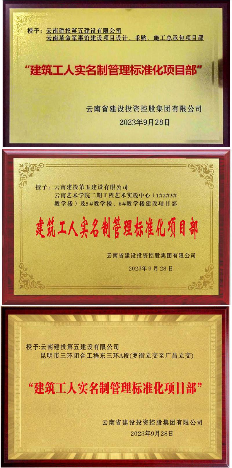 近日,集團(tuán)通報(bào)了2023年度年中建筑工人實(shí)名制管理工作考核暨第一批實(shí)名制管理標(biāo)準(zhǔn)化項(xiàng)目認(rèn)定結(jié)果,公司年中考核達(dá)標(biāo)。其中,云南昌達(dá)裝飾公司承建的云南革命軍事館建設(shè)項(xiàng)目設(shè)計(jì)、采購、施工總承包項(xiàng)目,第七直管項(xiàng)目部承建的云南藝術(shù)學(xué)院二期工程藝術(shù)實(shí)踐中心(1#2#3#教學(xué)樓)及5#教學(xué)樓、6#教學(xué)樓建設(shè)項(xiàng)目,路橋一部承建的昆明市三環(huán)閉合工程東三環(huán)A段(羅衙立交至廣昌立交)三個(gè)項(xiàng)目獲得集團(tuán)“建筑工人實(shí)名制管理標(biāo)準(zhǔn)化項(xiàng)目部”。