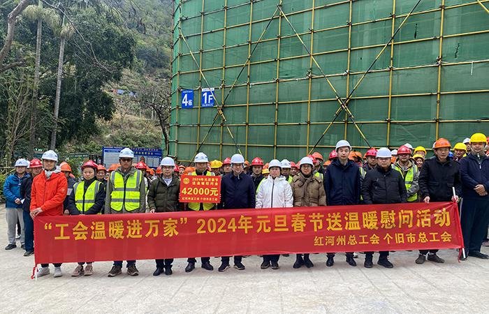 心系職工,情暖一線。1月23日,龍年新春佳節(jié)即將來(lái)臨之際,紅河州總工會(huì)黨組書(shū)記、常務(wù)副主席姜云,個(gè)舊市人大常委會(huì)副主任、市總工會(huì)主席許雪梅率慰問(wèn)組到公司第二直管項(xiàng)目部負(fù)責(zé)施工的個(gè)舊市工人療養(yǎng)院提升改造項(xiàng)目開(kāi)展“工會(huì)溫暖進(jìn)萬(wàn)家”2024年元旦春節(jié)送溫暖慰問(wèn)活動(dòng)。