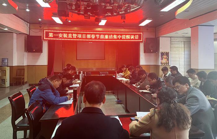 2月4日下午,第一安裝直管項目部黨支部在直管部會議室開展春節(jié)前廉潔提醒談話。直管部領(lǐng)導(dǎo)班子、二線關(guān)鍵崗位人員、項目經(jīng)理共計20人參會。