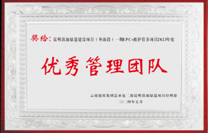 近日,昆明滇池綠道建設(shè)項目指揮部召開2023年度優(yōu)秀個人、優(yōu)秀團(tuán)體表彰會。昆明滇池綠道建設(shè)項目(外海段)一期EPC+維護(hù)管養(yǎng)土建七工區(qū)榮獲“優(yōu)秀管理團(tuán)隊”榮譽,項目經(jīng)理謝國飛榮獲“優(yōu)秀項目經(jīng)理”稱號,項目資料員劉麗榮獲“優(yōu)秀個人”稱號。