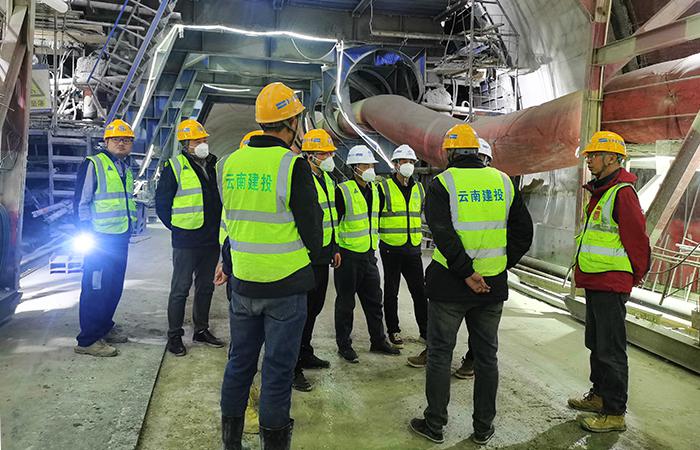 匡浩一行深入施工現(xiàn)場(chǎng),詳細(xì)踏勘隧道內(nèi)各個(gè)作業(yè)面施工情況,聽(tīng)取項(xiàng)目負(fù)責(zé)人關(guān)于施工組織、現(xiàn)場(chǎng)推進(jìn)、安全文明施工和成本管控等方面的情況匯報(bào)。