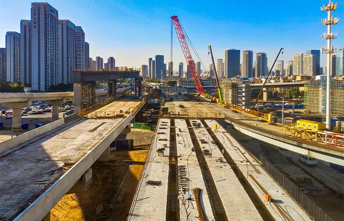 11月26日,由公司市政路橋一部參建的昆明市三環(huán)閉合工程東三環(huán)A段(羅衙立交至廣昌立交)項(xiàng)目廣福路主線橋左幅第12跨最后一片小箱梁順利吊裝完成,轉(zhuǎn)入橋面系及橋梁附屬結(jié)構(gòu)施工階段。