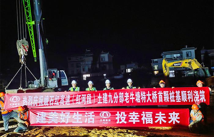 12月14日,由公司市政路橋一部負(fù)責(zé)施工的峨石紅高速(紅河段)九分部老牛塘特大橋左線(松村段)左幅9-2#樁基順利完成混凝土澆筑,這是該分部澆筑的首顆樁基。