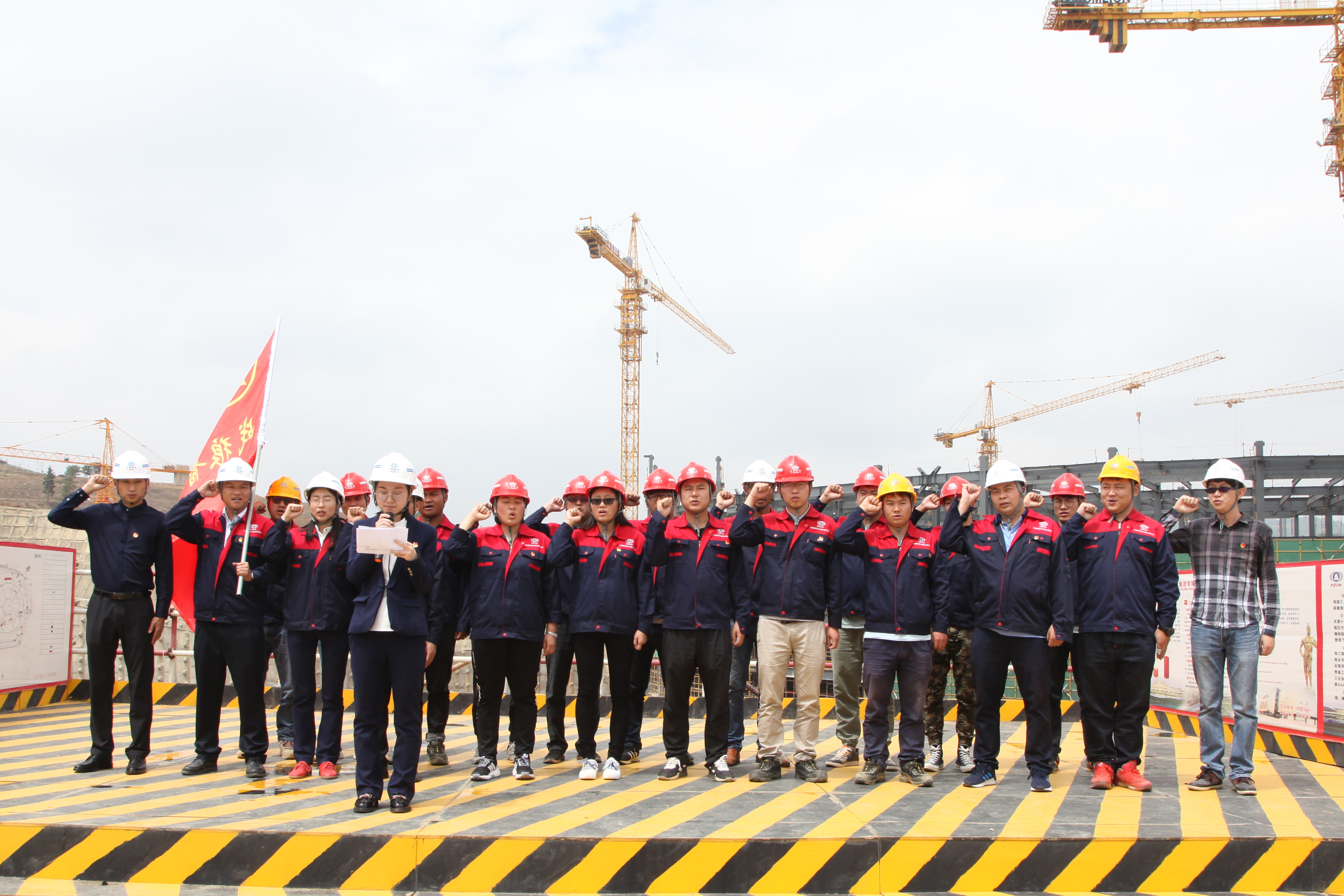 5月27日下午,第三直管項(xiàng)目部在車行天下汽車城(二期)項(xiàng)目施工現(xiàn)場(chǎng)舉行“戰(zhàn)狼青年突擊隊(duì)”的授旗儀式。公司黨委副書記榮凱和團(tuán)委副書記施尤俊親臨現(xiàn)場(chǎng)為“戰(zhàn)狼青年突擊隊(duì)”授旗并作動(dòng)員講話?!白钇D苦的擔(dān)子我們挑、最危險(xiǎn)的地方我們?nèi)?、最緊急的關(guān)頭我們上,最困難的時(shí)刻我們到?!卑殡S著洪亮的宣誓聲,突擊隊(duì)正式成立。