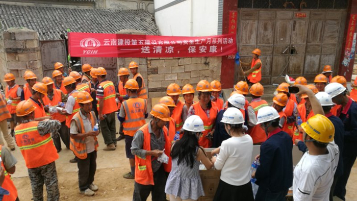 第七直管項目部工會先后到蘭坪、普洱等項目部開展了送清涼慰問,向奮戰(zhàn)在邊遠地區(qū)和炎熱環(huán)境中堅守崗位的廣大職工、農(nóng)民工送上絲絲涼意。直管部向一線職工和勞務(wù)班組人員發(fā)放了板蘭根、冰紅茶、霍香正氣水、酸角汁等防暑降溫藥品、清涼飲品、解暑飲料和安全知識讀本,進行了防暑降溫知識宣傳。項目部根據(jù)所在地氣溫情況科學(xué)合理安排作息時間和防暑飲食、預(yù)防中毒、食物中毒,保障職工在高溫天氣下的安全健康。