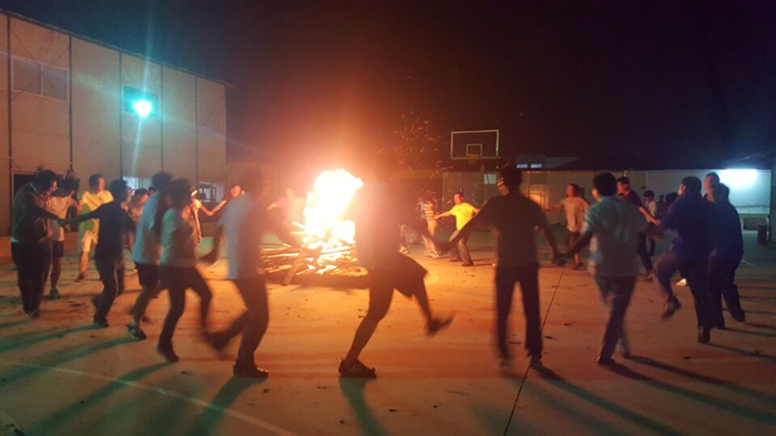 夜幕降臨,伴隨著激動(dòng)的心情火把節(jié)點(diǎn)火儀式開始了。天威云變項(xiàng)目部甲方、監(jiān)理及五〇八直管部天威云變項(xiàng)目部管理人員、海源財(cái)富中心項(xiàng)目部管理人員、二線職工共同舉起象征希望、幸福、健康的火把,點(diǎn)燃了項(xiàng)目球場中央的篝火。升騰的火焰將活動(dòng)推向高潮,大家圍繞在篝火旁,手拉手跳起熱情奔放的舞蹈《七月火把節(jié)》,現(xiàn)場一片歡騰。