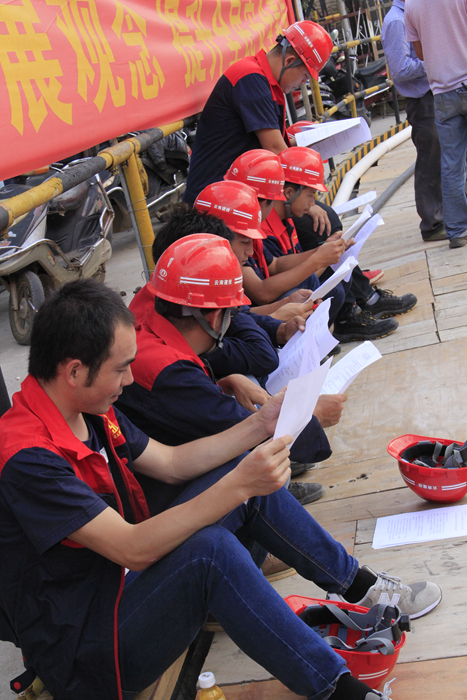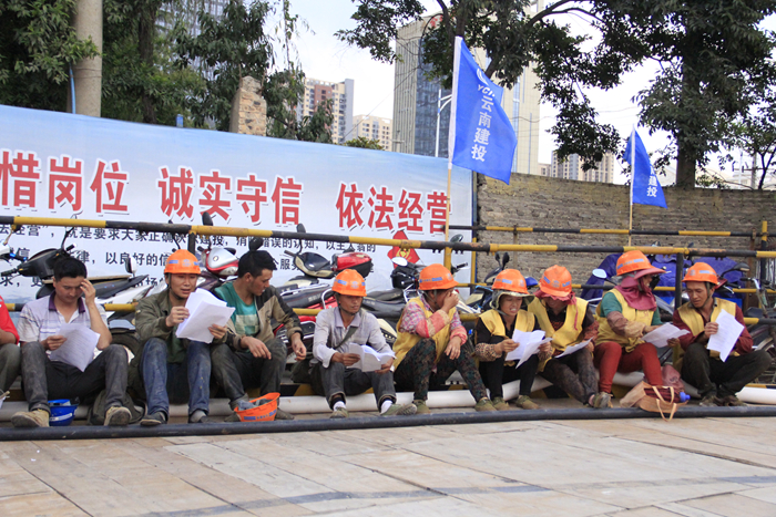 海源財富中心項目部采用競賽方式,以班組為團隊,設有4個評委,設置一、二、三等獎,共組織了管理人員、木工班組、混凝土班組、鋼筋班組、架子工班組、材料工等6個團隊參加,每個團隊15人;天威云變項目部則采取有獎問答方式舉行。兩個項目部共計146人賽,共發(fā)放了280份獎品?;顒蝇F(xiàn)場氣氛活躍,反響熱烈,為直管部進一步推動“普及法律知識、強化維權意識,促進和諧發(fā)展”及進一步提升施工現(xiàn)場人員的安全素質,營造良好的安全發(fā)展環(huán)境氛圍提供正能量。