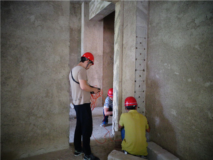 檢測主要通過對部分梁、柱、剪力墻混凝土?xí)r間強(qiáng)度、現(xiàn)澆梁的縱向力鋼筋保護(hù)層厚度、樓板厚度、樓層凈高項(xiàng)目進(jìn)行抽檢,確定影響工程主體結(jié)構(gòu)安全的重要項(xiàng)目和指標(biāo)是否符合設(shè)計(jì)和規(guī)范要求。大理州建設(shè)工程質(zhì)量檢測中心進(jìn)行了此次檢測。