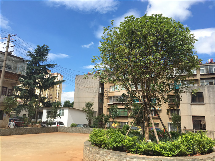 此次種植共更換補(bǔ)種八月桂花、大葉香樟、球花石楠、金森女貞球、紅葉石楠、小八月桂花、黃蓮翹等苗木120多株,補(bǔ)植了30多平方米地被植物麥冬草,種植面積約180平方米。