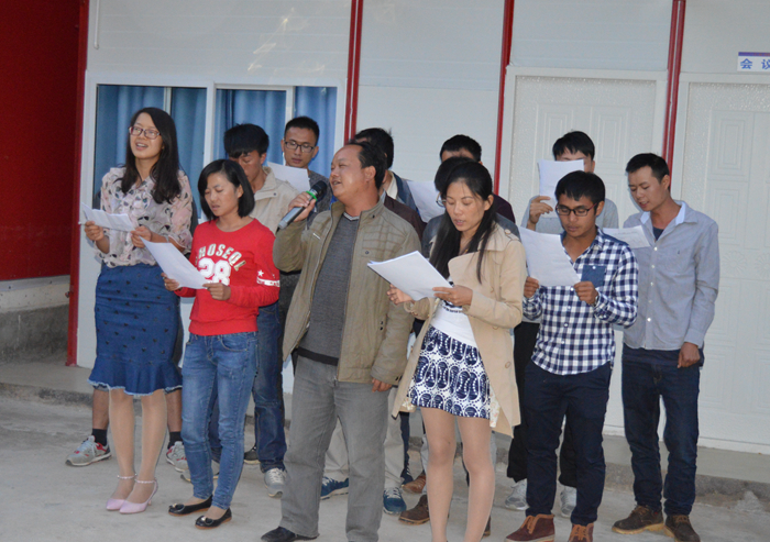 4月21日,云南省建設(shè)投資控股集團(tuán)有限公司正式成立,《建投之歌》在此唱響。在集團(tuán)開啟的新篇章下,作為建投人,為更好地發(fā)揚(yáng)高原鐵軍堅(jiān)忍不拔的精神,香麗路項(xiàng)目部十一標(biāo)段開展了不同形式的學(xué)習(xí)傳唱活動(dòng)。項(xiàng)目部將《建投之歌》的音頻及歌譜歌詞上傳到項(xiàng)目部QQ群、微信群以供大家自學(xué)傳唱。為方便看懂歌譜、記牢歌詞,大家抄寫了歌譜及歌詞,項(xiàng)目部各工區(qū)還進(jìn)行了學(xué)唱比拼。大家紛紛表示,在《建投之歌》的旋律中將越干越有勁。