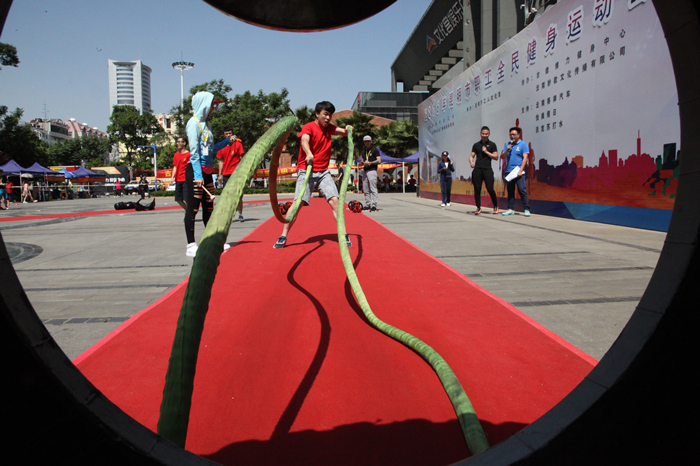 直管部張毅、鄒繼、左偉奇以團(tuán)體賽的方式進(jìn)行了比賽,三人分段共同完成了賽道任務(wù),其中包括跳繩30個(gè)、俯臥撐10個(gè)、翻滾輪胎2個(gè)、恒定阻力動(dòng)感單車快騎30秒、杠鈴?fù)εe20公斤5次、仰臥起坐20個(gè)、定高甩繩15秒等。在比賽中,隊(duì)員們爭(zhēng)分奪秒,使出了渾身解數(shù),最終以2分25秒的成績(jī)完成了整個(gè)賽道任務(wù)。