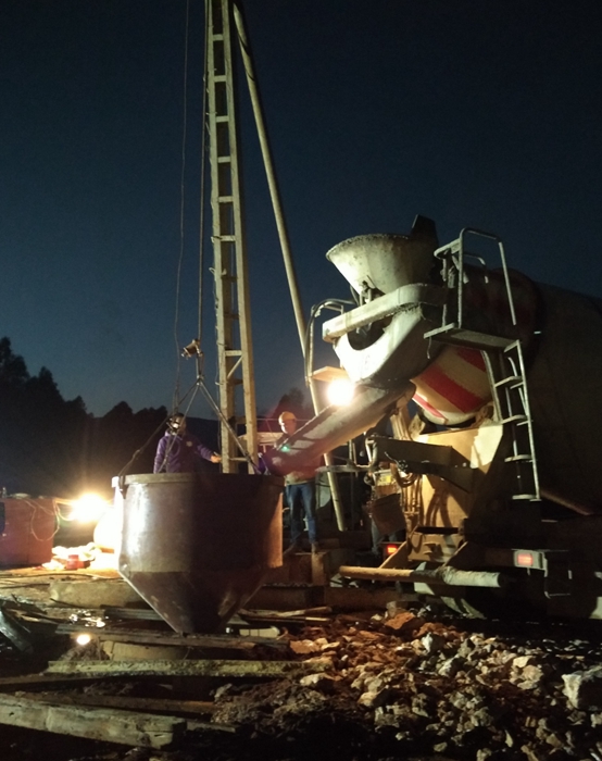 技術(shù)支持: 方森科技 2016年1月10日,五〇二直管項(xiàng)目部紅河州新安所至雞街高速公路項(xiàng)目五分部K21+440大木寨一號中橋樁基3B-2首樁清孔完畢后,泥漿比重、粘稠度、含砂率經(jīng)檢測合格后,同意澆筑。