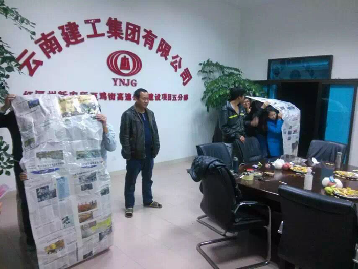 技術(shù)支持: 方森科技 2016年1月1日,五〇二直管項(xiàng)目部紅河州新安所至雞街高速公路項(xiàng)目五分部里一片歡聲笑語(yǔ),只見(jiàn)參賽職工迅速分成兩組,分別站在舊報(bào)紙粘成的“風(fēng)火輪”里,大家邊走邊滾動(dòng)“風(fēng)火輪”。站在一旁的觀眾熱情高漲,都在鼓掌助威……在2016年到來(lái)的第一天,項(xiàng)目部迎來(lái)了一場(chǎng)“歡慶元旦 喜迎新年”文娛活動(dòng),共組織現(xiàn)場(chǎng)職工18人。