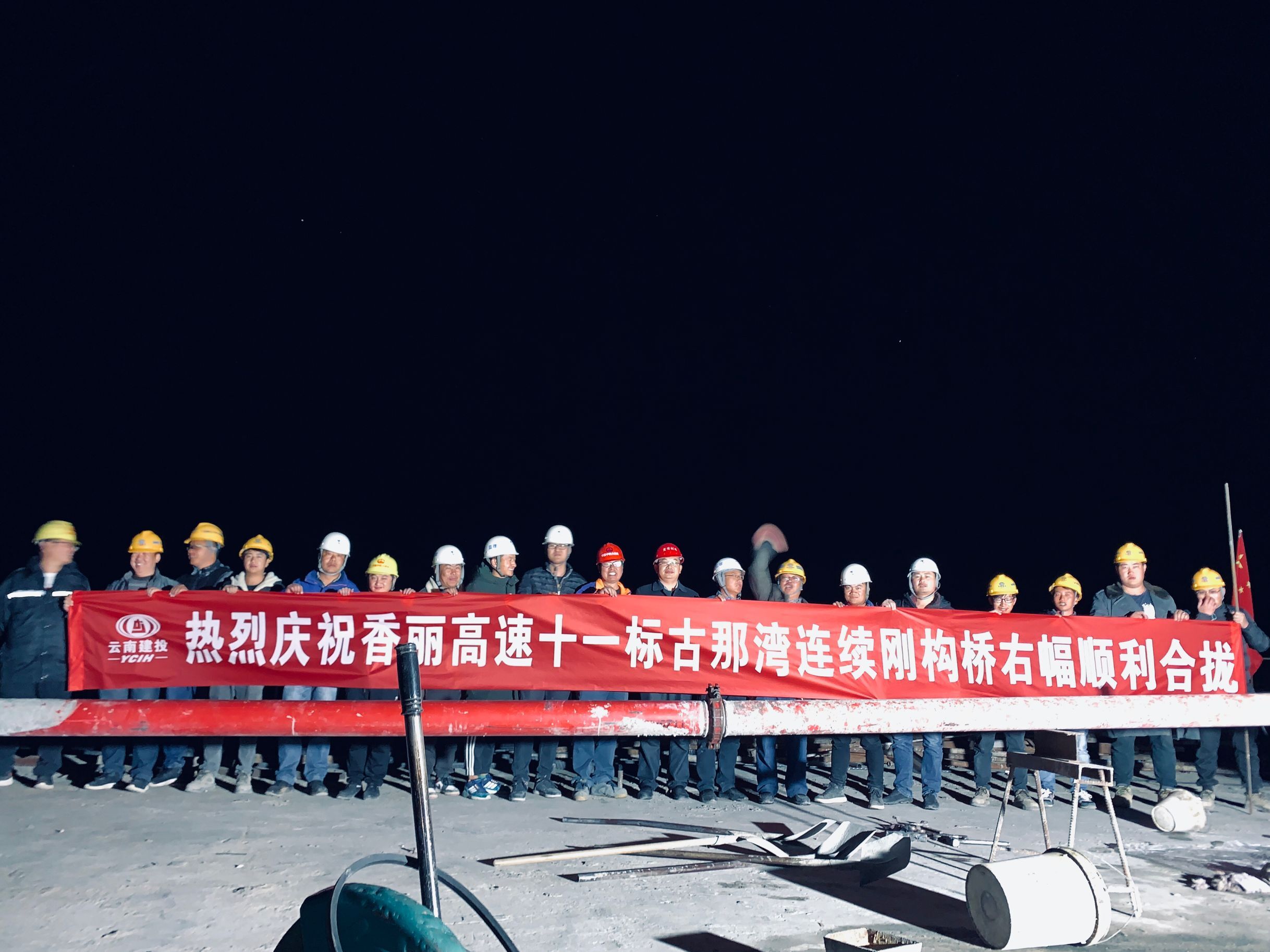 11月30日凌晨三點的寒風(fēng)中,路橋一部負責(zé)施工的香麗高速十一標項目古那灣連續(xù)剛構(gòu)橋右幅中跨澆筑完成,順利合龍。該中跨合龍段澆筑歷時5個小時,共澆筑C55微膨脹混凝土52立方米。