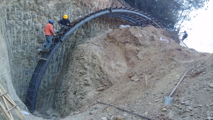 項(xiàng)目前期輔助工程完成了包括便道A1-1進(jìn)場道路、A1-1支線道路、鋼筋加工場、民工班組駐地、棄土場。此外,項(xiàng)目部注重人才培養(yǎng),要求應(yīng)屆大學(xué)畢業(yè)生動手動腦親歷親為,繪制CAD圖、工程量統(tǒng)計(jì),熟練運(yùn)用GPS、全站儀、水準(zhǔn)儀進(jìn)行現(xiàn)場放樣,參與洞口施工全過程,理論與實(shí)際相結(jié)合,為強(qiáng)化香麗高速公路建設(shè)生產(chǎn)管理工作提供人才和技術(shù)支撐。