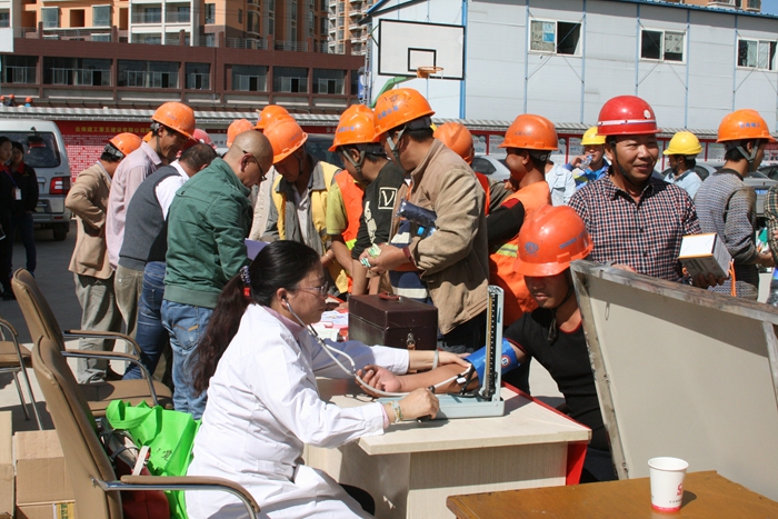 為現(xiàn)場(chǎng)職工進(jìn)行免費(fèi)體檢和日常疾病防治咨詢