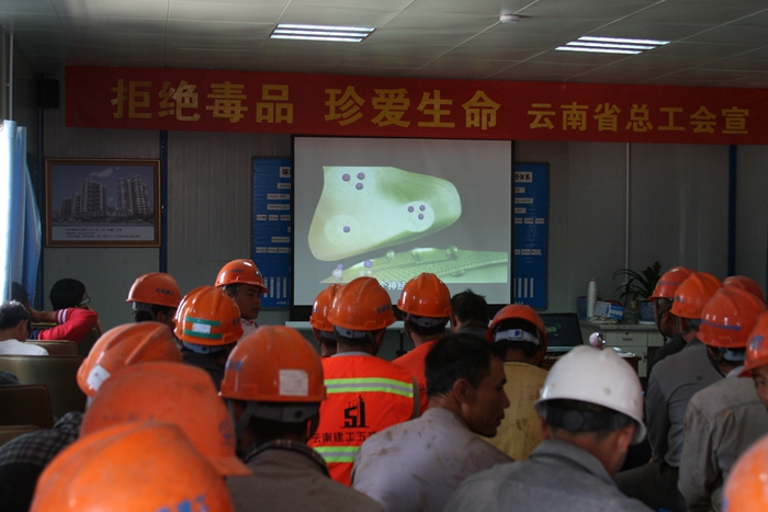 根據(jù)省委宣傳部、省禁毒委關(guān)于《云南省禁毒人民戰(zhàn)爭(zhēng)實(shí)施方案》和中華全國(guó)總工會(huì)與國(guó)家禁毒委員會(huì)辦公室在全國(guó)廣大職工中開展以“抵制毒品、參與禁毒”為主題的拒絕毒品“零計(jì)劃”宣傳教育活動(dòng)的有關(guān)要求,為增強(qiáng)職工禁毒意識(shí),提高了大家識(shí)毒、拒毒、防毒的能力,公司工會(huì)組織禁毒宣傳小組來(lái)到昆明市官渡區(qū)五里中央商務(wù)區(qū)回遷安置房項(xiàng)目部,向現(xiàn)場(chǎng)包括六公司和十公司在內(nèi)的職工及勞務(wù)工人180余人進(jìn)行了禁毒知識(shí)宣傳活動(dòng)。活動(dòng)上,禁毒宣傳小組不僅給大家進(jìn)行禁毒知識(shí)的宣傳,還免費(fèi)為現(xiàn)場(chǎng)職工進(jìn)行心臟、脈搏、血壓等常規(guī)體檢,為冬季防流感提供咨詢平臺(tái),宣傳高血壓、高血脂、糖尿病等常見慢性疾病的預(yù)防保健知識(shí),發(fā)放了板藍(lán)根沖劑、抗病毒顆粒、風(fēng)寒風(fēng)熱感冒沖劑和小柴胡等防治流感藥品100多盒,還發(fā)放了創(chuàng)可貼、醫(yī)用酒精、棉球等日常外用藥品和200盒安全套。
