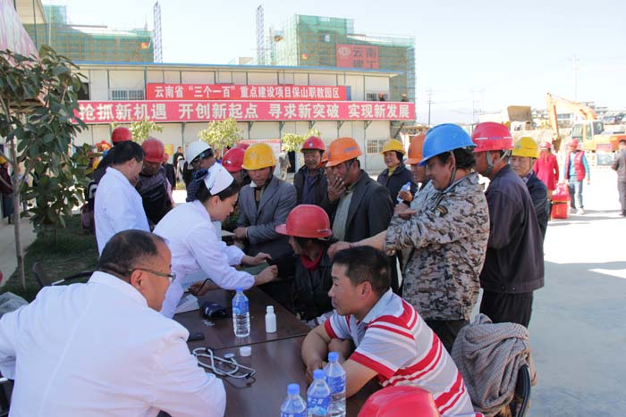 潘紅偉一行在參觀省級(jí)重點(diǎn)項(xiàng)目保山職教園區(qū)(保山中等專業(yè)學(xué)校)施工現(xiàn)場后,充分肯定并感謝廣大一線建設(shè)者為保山城市建設(shè)發(fā)展所做出的貢獻(xiàn),為大家不畏辛勞,甘于奉獻(xiàn)的精神感到欣慰,并致以廣大一線工友新春佳節(jié)最良好的祝福。他希望大家再接再厲為保山發(fā)展做出新的更大的貢獻(xiàn)。并為175名職工發(fā)放慰問品,為10名先進(jìn)職工、15名困難職工另發(fā)放慰問金。隨后潘紅偉和陳自鋒為項(xiàng)目“流動(dòng)職工書屋”揭牌。在慰問活動(dòng)中,慰問組還邀請(qǐng)了保山市人民醫(yī)院專家為一線職工開展義診活動(dòng)。切實(shí)把黨的真切關(guān)懷、深情厚誼送到了一線職工和農(nóng)民工的心坎上。