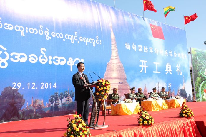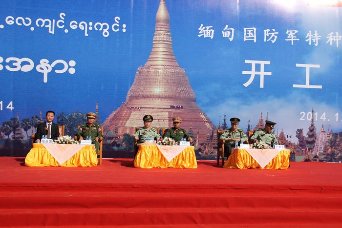 由中國(guó)軍方援建,第七直管項(xiàng)目部負(fù)責(zé)施工的緬甸國(guó)防軍特種兵綜合訓(xùn)練場(chǎng)工程開工儀式于2014年12月29日在緬甸首都內(nèi)比都工地現(xiàn)場(chǎng)舉行。集團(tuán)公司黨委副書記、紀(jì)委書記張戰(zhàn)國(guó)出席了開工儀式。出席開工儀式的中緬雙方相關(guān)主要人員還有中國(guó)人民解放軍總參軍訓(xùn)部陸軍建設(shè)局局長(zhǎng),工程兵學(xué)院副院長(zhǎng),國(guó)防部外事辦參謀,中國(guó)駐緬甸大使館武官,緬甸國(guó)防部作訓(xùn)部部長(zhǎng),內(nèi)比都軍區(qū)副司令員等。