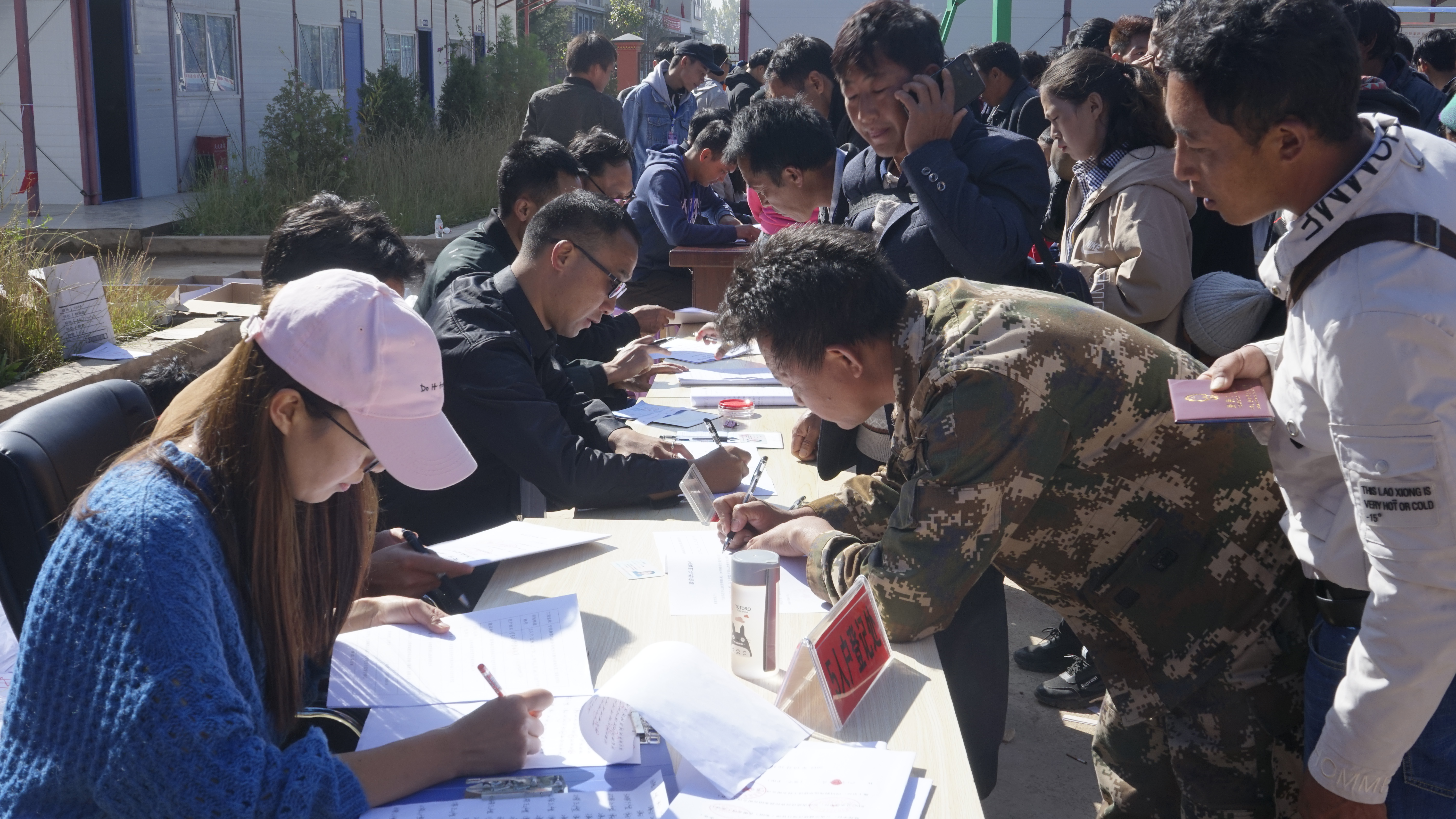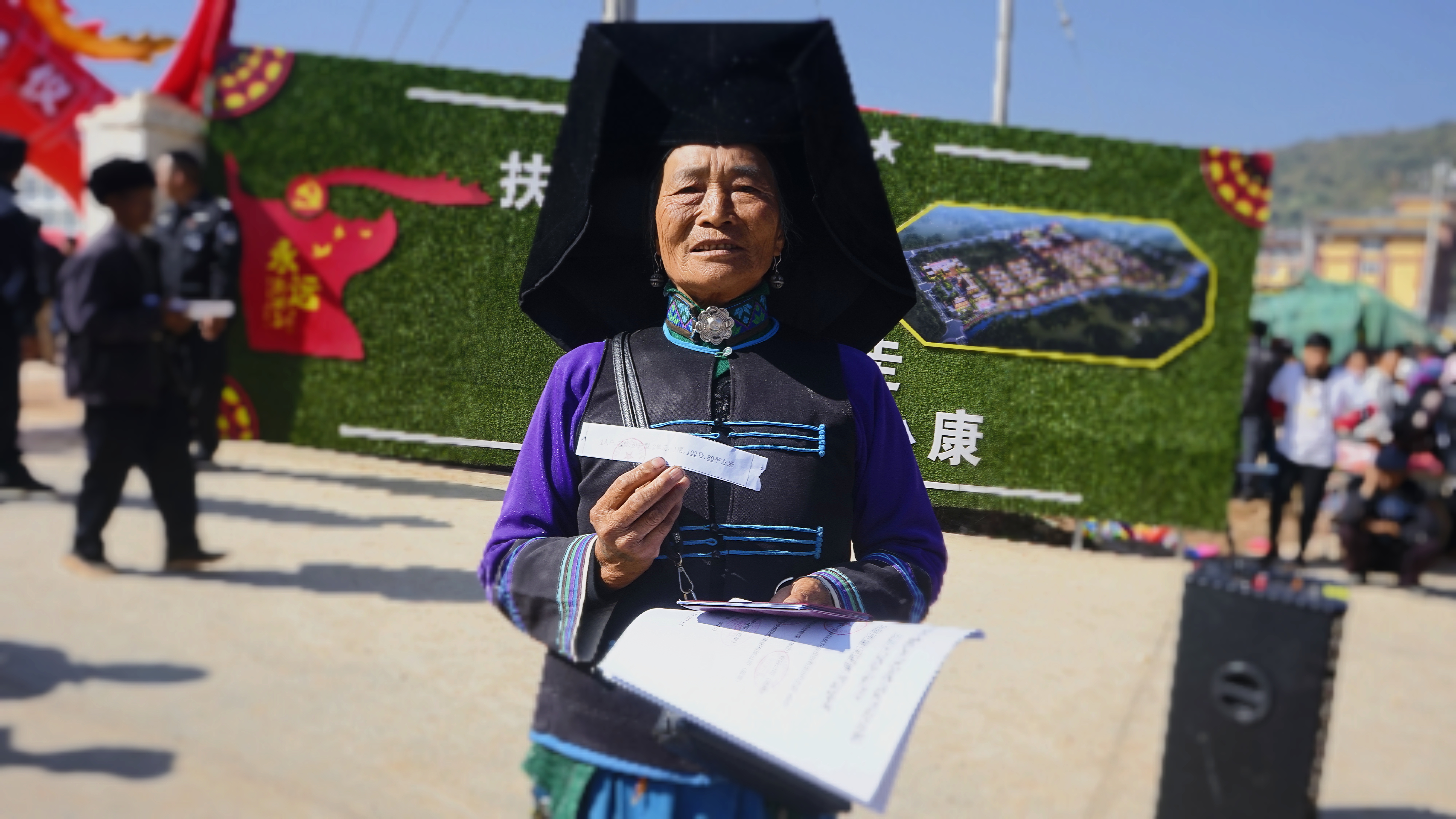 來自寧蒗彝族自治縣15個鄉(xiāng)鎮(zhèn)的建檔立卡困難群眾早上七點開始在項目部駐地外集合等待抽簽。在三名村民代表的見證下,易地辦工作人員將啟封簽條放入抽簽箱,抽簽工作正式啟動。整個分房流程為按戶型排隊進(jìn)場-抽取對應(yīng)戶型簽條-簽條登記-領(lǐng)取房屋質(zhì)量保證書,現(xiàn)場2000多人在民警和工作人員的疏導(dǎo)之下井然有序,項目部還專門設(shè)立了問詢小組,幫助辦完手續(xù)的村民在鳥瞰圖上查找棟號、單元號,一一回答村民提出的問題,幫助村民快速找到自己的新家。