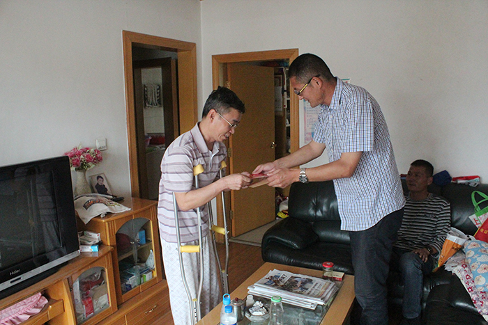 技術(shù)支持: 方森科技 2013年9月16日上午,公司第八直管項目部看望了因工傷在家休養(yǎng)的職工石亞南,了解了他的恢復(fù)情況,并為他送上節(jié)日的慰問。在中秋佳節(jié)到來之際,直八部考慮到石亞南雖然享受了工傷的優(yōu)惠政策,每月工資沒有受到影響,但他為恢復(fù)骨折而進行的治療費用金額較高,結(jié)合實際情況,直管部不僅為他送去了過節(jié)費,還送去500元的困難職工慰問金。