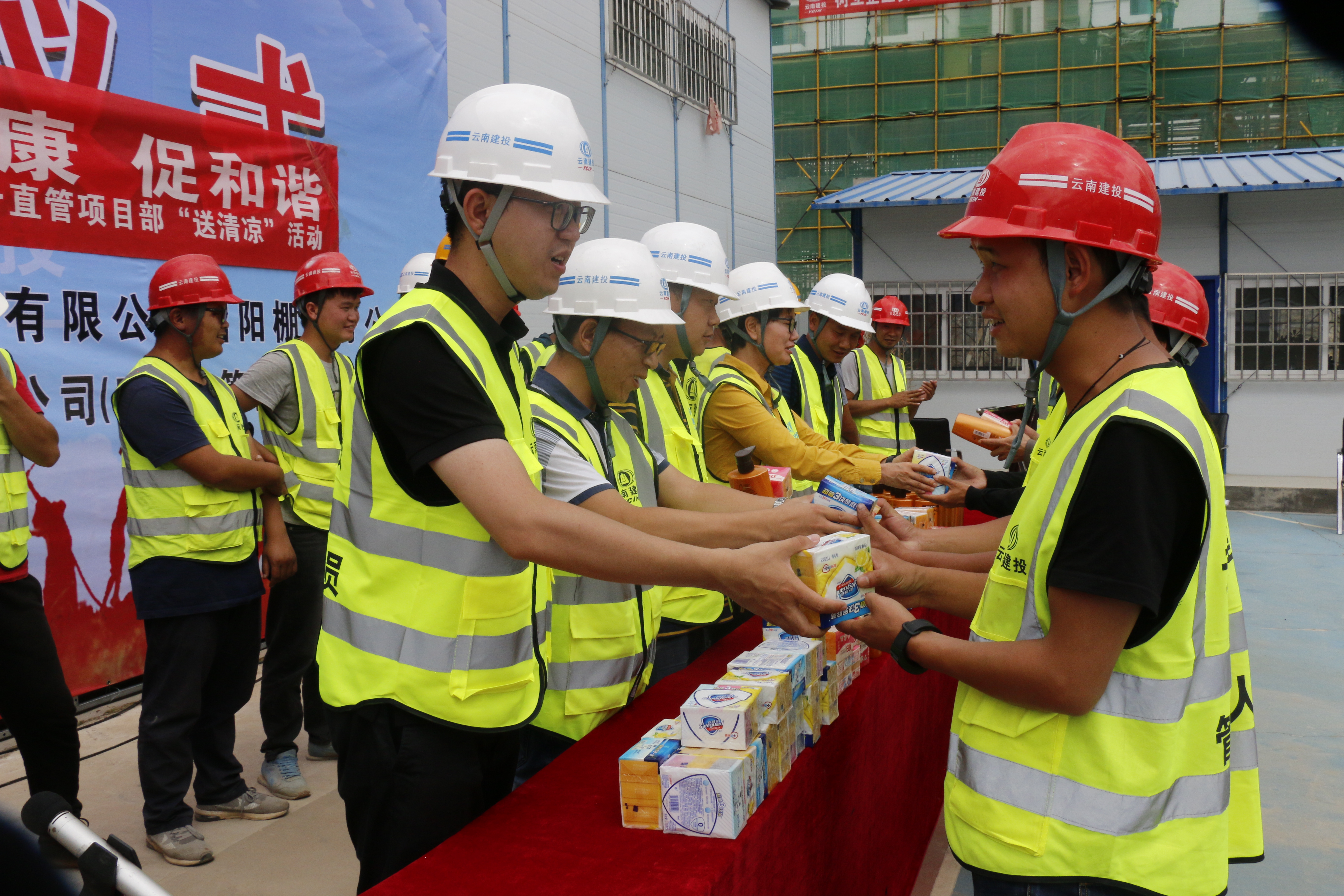 此次活動(dòng)將“送清涼”與“直管部月檢”相結(jié)合,覆蓋到五〇一直管項(xiàng)目部所有在建項(xiàng)目(安寧技師學(xué)院項(xiàng)目、綠色能源產(chǎn)業(yè)園項(xiàng)目、昭陽區(qū)第二人民醫(yī)院項(xiàng)目、棚戶區(qū)改造項(xiàng)目、省耕塘項(xiàng)目、蓄水塘項(xiàng)目)共計(jì)慰問117人。在棚戶區(qū)改造項(xiàng)目,公司副總經(jīng)理史呈森親切慰問了高溫堅(jiān)守在崗位上的一線職工。