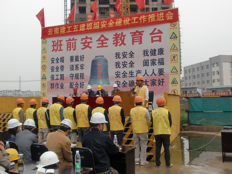本次推進(jìn)會(huì)主要圍繞班組每日班前安全會(huì)、三級(jí)入場(chǎng)教育、農(nóng)民工業(yè)余學(xué)校、班組安全協(xié)管員制度等幾個(gè)方面來(lái)進(jìn)行?,F(xiàn)場(chǎng)還組織了一個(gè)操作班組完整演練了“班組班前安全會(huì)”的全過(guò)程。