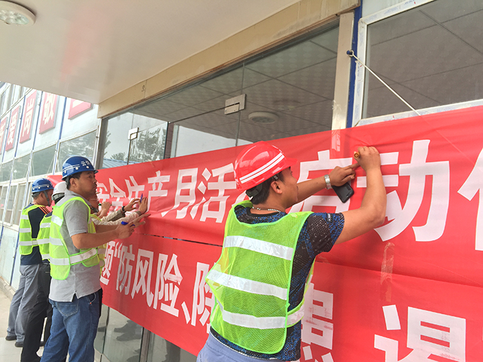 啟動(dòng)儀式上,沁陽(yáng)項(xiàng)目項(xiàng)目經(jīng)理田彪帶領(lǐng)大家進(jìn)行安全宣誓,并宣布“安全生產(chǎn)月”正式啟動(dòng)。沁陽(yáng)市云懷水務(wù)有限公司代表王曉博在儀式上講話,對(duì)項(xiàng)目部加強(qiáng)安全生產(chǎn)及消防工作提出了意見和建議,他表示,希望項(xiàng)目部能夠通過2019年安全生產(chǎn)月主題“防風(fēng)險(xiǎn)、除隱患、遏事故”活動(dòng),提高安全防御能力。隨后,全體參會(huì)人員在安全生產(chǎn)月主題布標(biāo)上簽名,并在會(huì)議室組織觀看安全教育警示片。