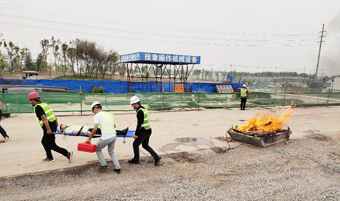 “安全生產(chǎn)月”啟動(dòng)儀式結(jié)束后,全體人員在沁陽(yáng)項(xiàng)目護(hù)城河施工現(xiàn)場(chǎng)開展消防安全應(yīng)急演練,演練活動(dòng)按照方案井然有序進(jìn)行,119消防大隊(duì)消防員參與此次搶險(xiǎn)滅火工作。