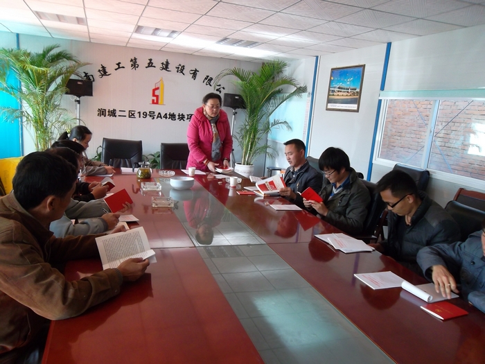 2012年12月13日,第五直管部黨支部組織潤(rùn)城項(xiàng)目部學(xué)習(xí)了新黨章,在會(huì)上為黨員們發(fā)放新黨徽,并要求今后黨員必須佩戴黨徽上班。