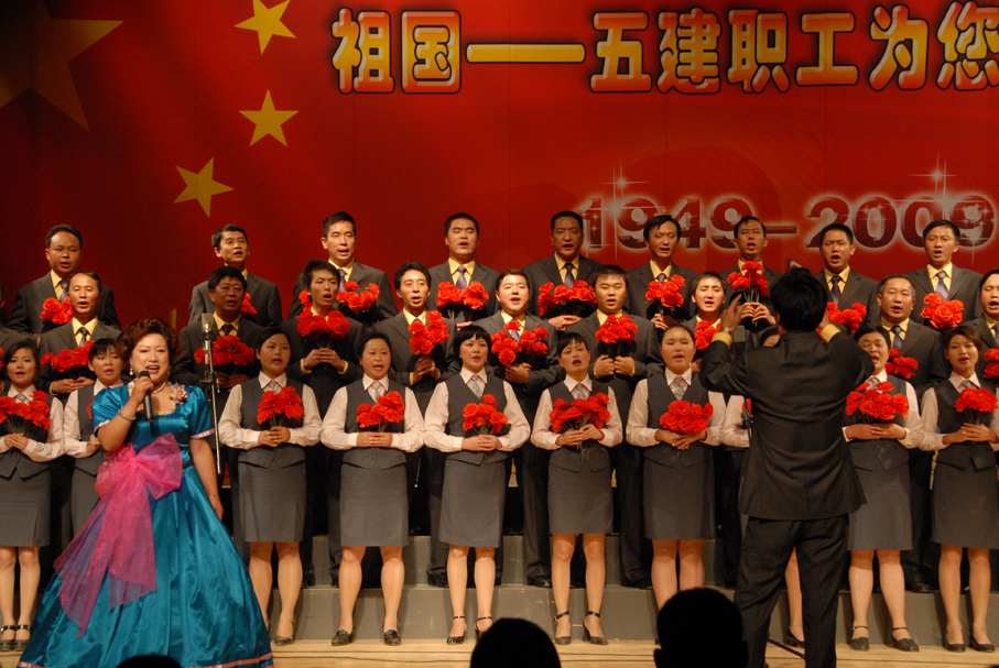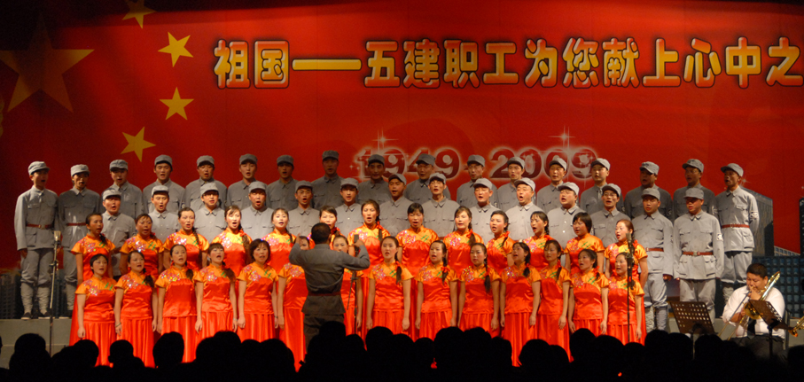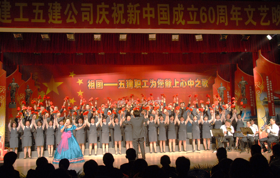 五建公司于9月28日晚在公司禮堂舉辦以《祖國――五建職工為你獻(xiàn)上心中的歌》為主題的文藝晚會,慶祝中華人民共和國建立六十周年。來自公司和基層22個單位的700多名在職及退休職工,共演出了19個節(jié)目,大家以飽滿的熱情祝福偉大的社會主義祖國,用嘹亮的歌聲抒發(fā)對偉大祖國的熱愛,以昂揚(yáng)的斗志表達(dá)實(shí)現(xiàn)公司跨越式發(fā)展的決心。