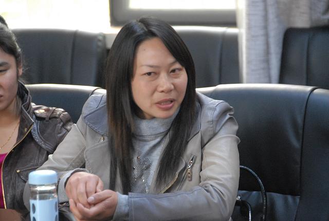 圖為五〇五直管部主人經(jīng)濟(jì)師者麗華在座談會(huì)上發(fā)言